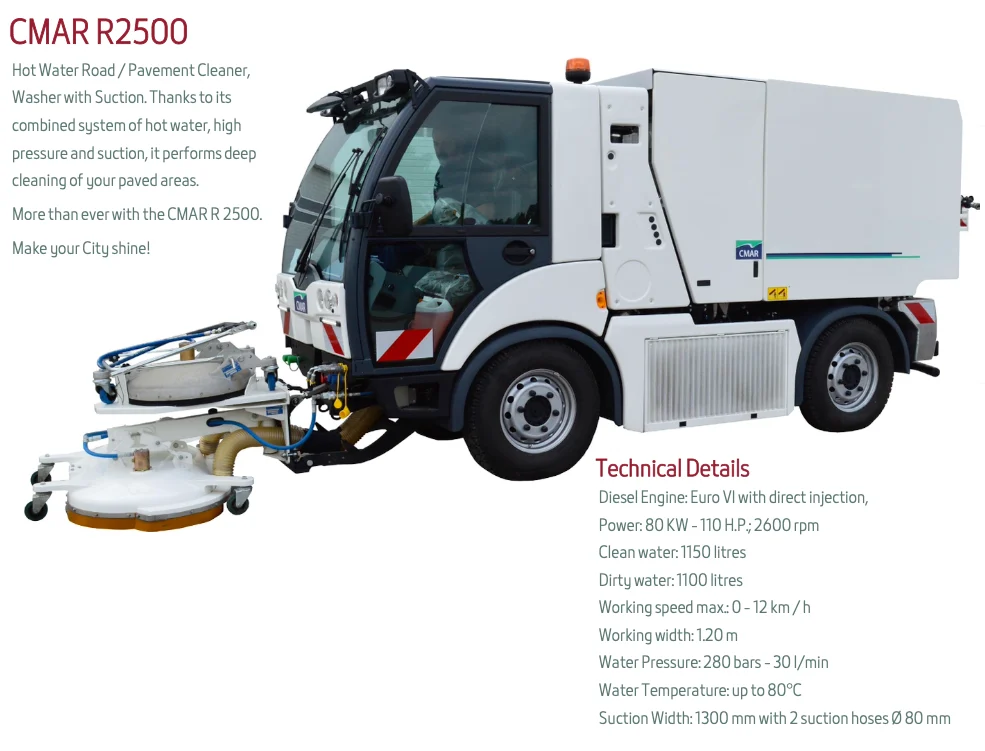 Powerful street sweeper combination of mechanical and vacuum sweeping equipped with rotating shaft and hammers system Designed to work without water, allowing savings of up to 150,000 litres/year.