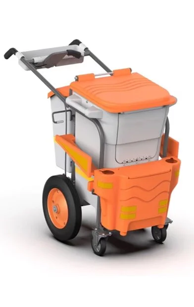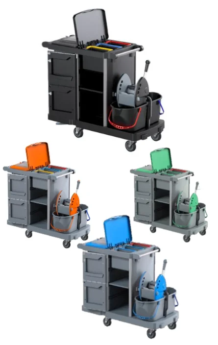 Ideal for dusting, waste collection and floor and surfaces cleaning , all in one trolley. Multipurpose trolley made of polypropylene copolymer.