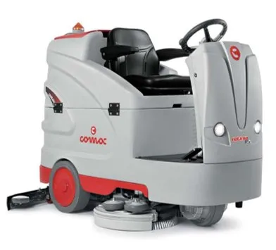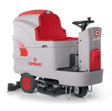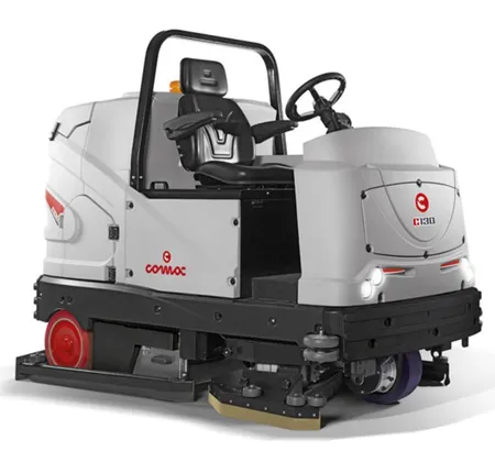 Powerful ride -on industrial floor Scrubber, designed for cleaning large Spaces in environments such as airports, Railway stations, car parks, logistics Centres and warehouses, as well as in Industrial structures and shopping Centres.