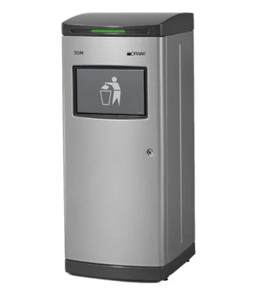 Cool waste compaction system for public places. Ideal locations are restaurants, cafés, food courts, airports, bus and train stations, theme parks and malls. TOM is about the same size as a conventional waste bin but can hold up to seven times as much waste