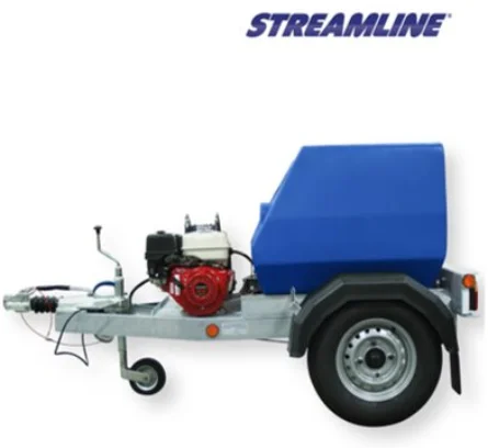 The Denver 800ltr Trailer water bowser, mounted on single axle chassis, with Honda engine, capable of producing 16lpm max flow 276bar max pressure. Comes complete with a 30m high pressure hose.